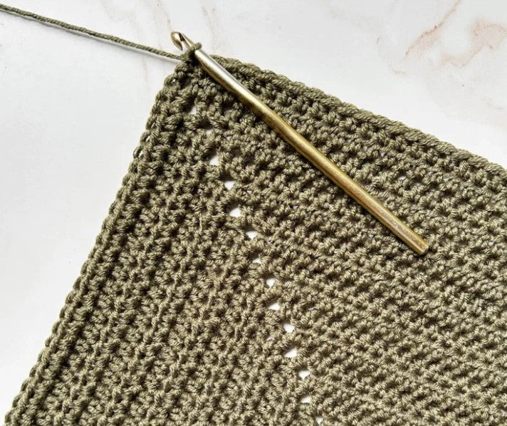 - Crochet Gauge: 14 sc x 20 r on I-9 (5.5mm)