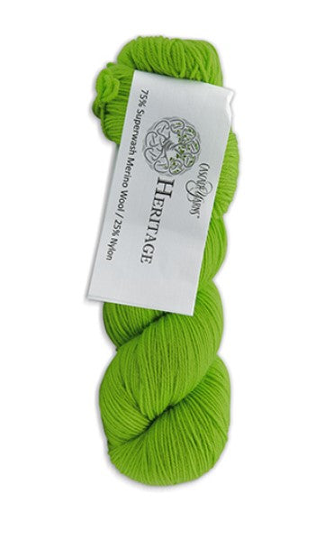 Heritage is a super soft fingering weight yarn that is machine washable and dryable because of its blend of super wash merino wool and nylon. Choose one for a solid-colored project or several for a beautiful colorwork project. Perfect for socks, mitts, hats, sweaters and one-skein projects!