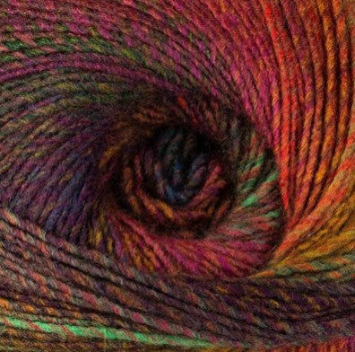 Perfect for simple shapes and accessories, this self striping yarn will add a new dimension to any knitted or crochet piece.