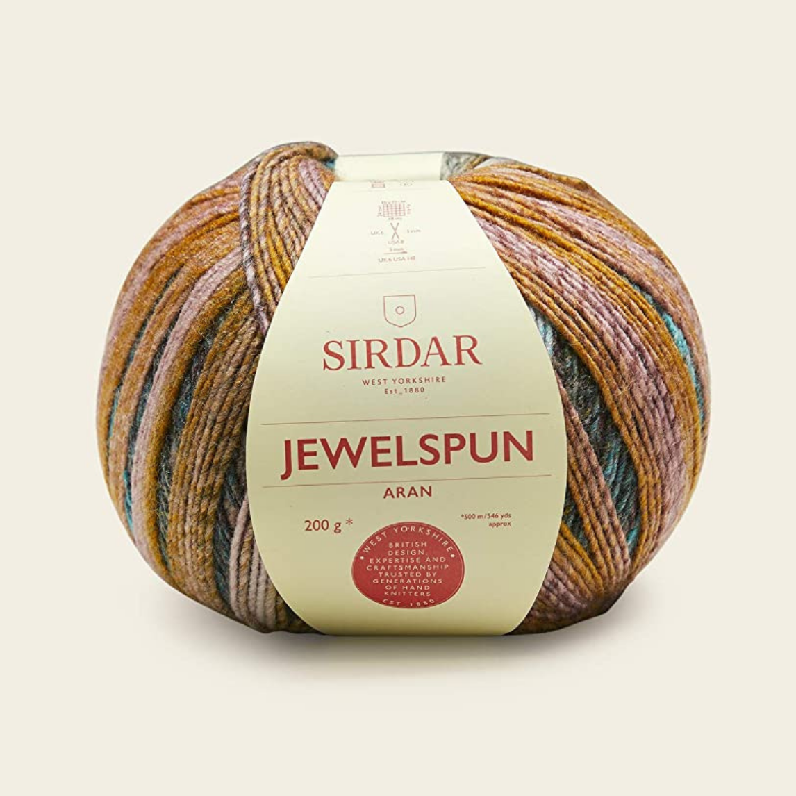 Jewelspun gives you the handspun look in a practical easy-care, acrylic. With six different shades, you will find a self striping colorway that suits any style in this lightweight aran yarn.