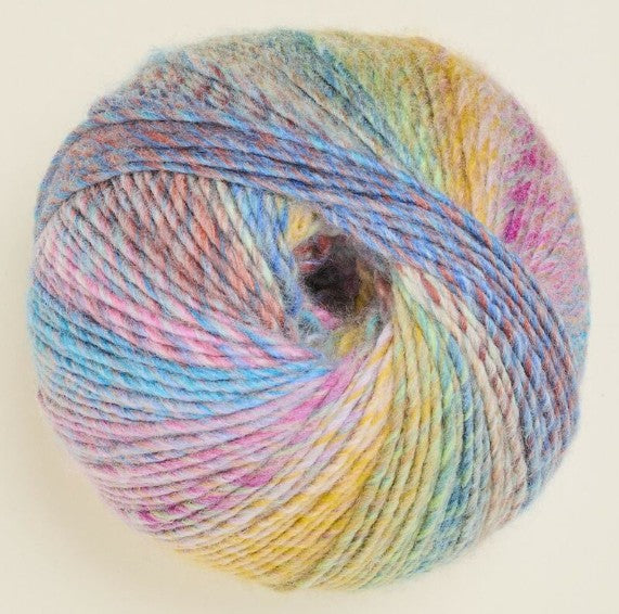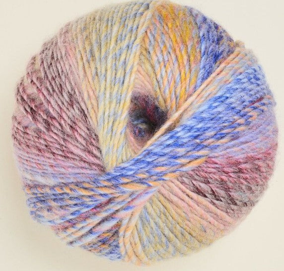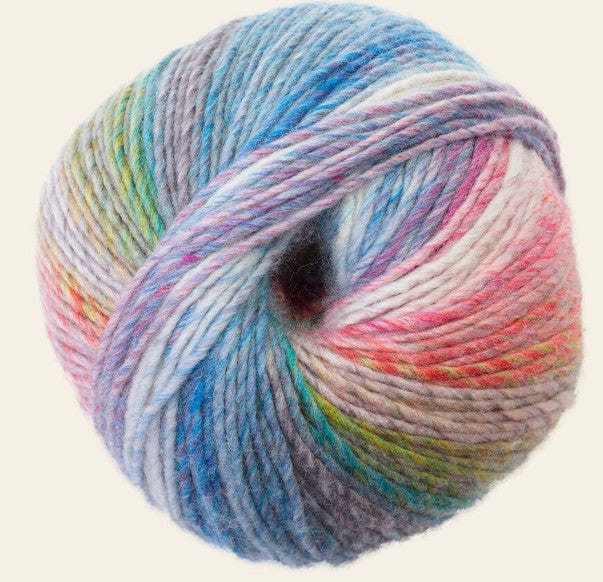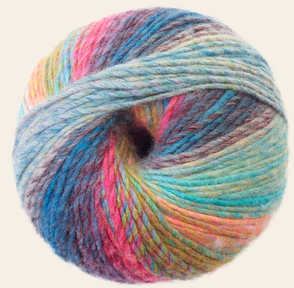 Sirdar Jewelspun With Wool is a chunky yarn sister for incredibly popular self-striping Sirdar Jewelspun. With the same hand dyed, handspun look, Jewelspun With Wool has a touch of soft wool for extra warmth. Cast-on lightweight, easy-care, chunky Jewelspun With Wool and transform simple quick-knit chunky patterns and textured chunky stitches with effortless stunning stripes.