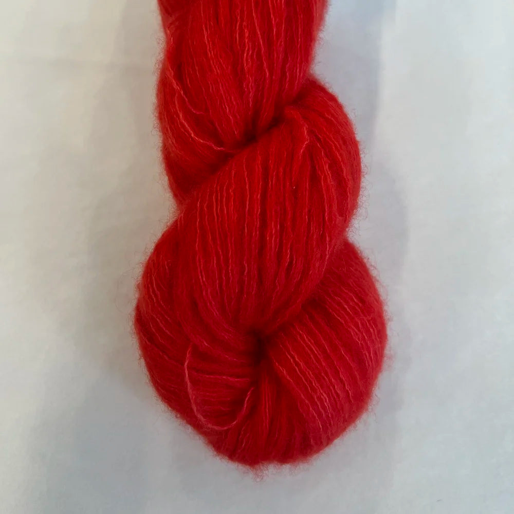 Feather is a whisper soft, mohair/silk blend. This yarn is perfect for holding with another yarn for a halo effect or hold it double for the floaty garment of your dreams!