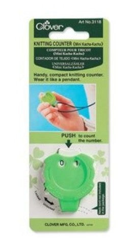 Track the number of knitted stitches and rows with this pendant style counter that resembles a cute little green frog.