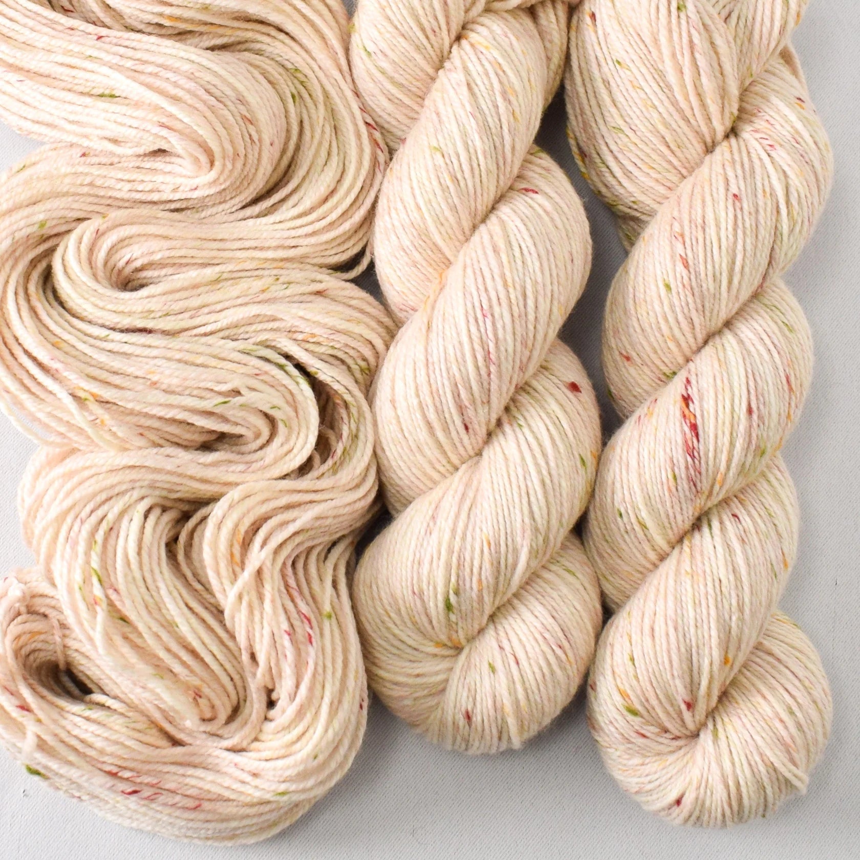 Add a little sprinkle of fun with this yarn! Cupcake is a classic round and bouncy 3-ply worsted weight yarn with a tweedy twist - multicolored pops of acrylic slub are blended in with the superwash Merino wool for a little extra color.
