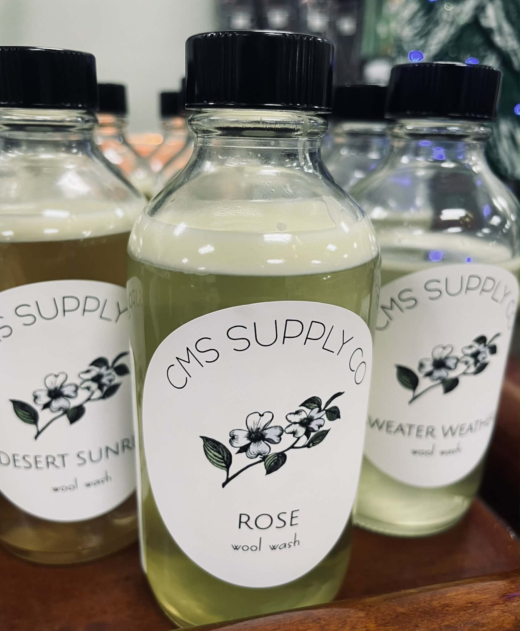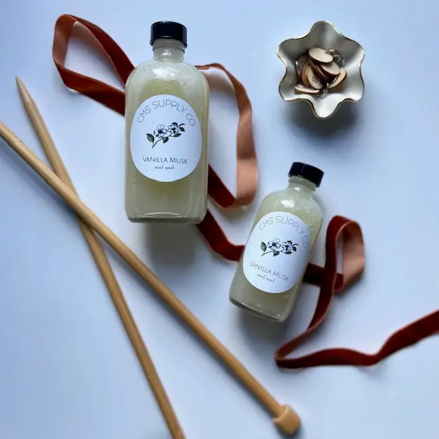 Wool wash is critical for taking the best care of your hand knits. This wool wash is easy to use, made in house by CMS Supply Co, and will leave your hand knits softer than before the washing. No rinse required!